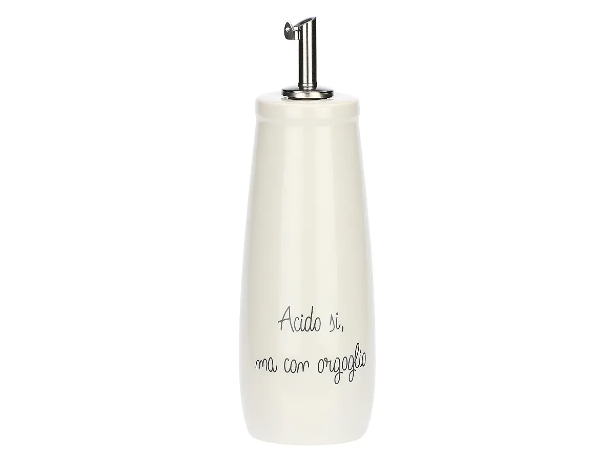 Acetiera della linea “Gli Onesti” in porcellana bianca, capacità 250 ml, pensata per servire e conservare l’aceto con stile. Caratterizzata da un design moderno e da una schietta personalità, unisce funzionalità ed eleganza in cucina. Ideale per arricchire la tavola o la dispensa con un tocco contemporaneo, garantendo praticità e cura dei dettagli.