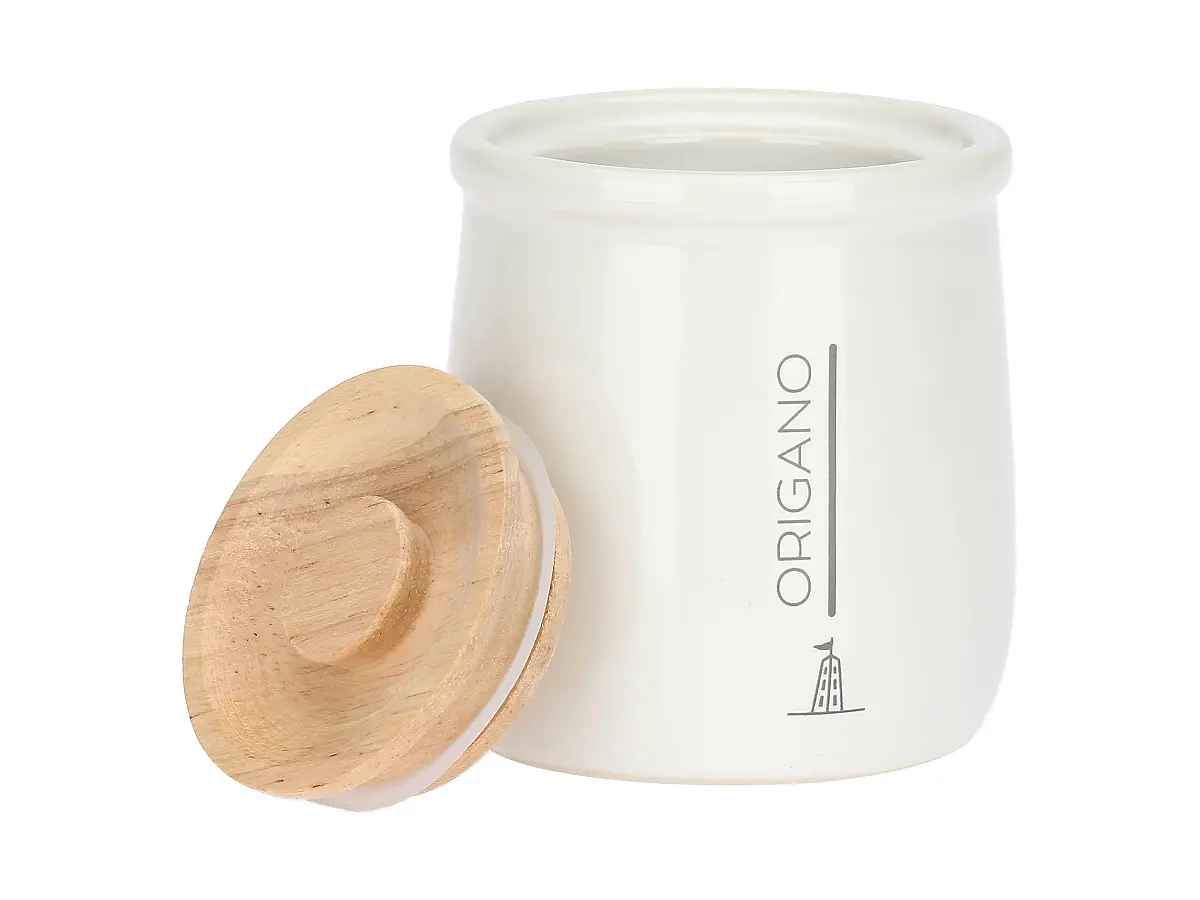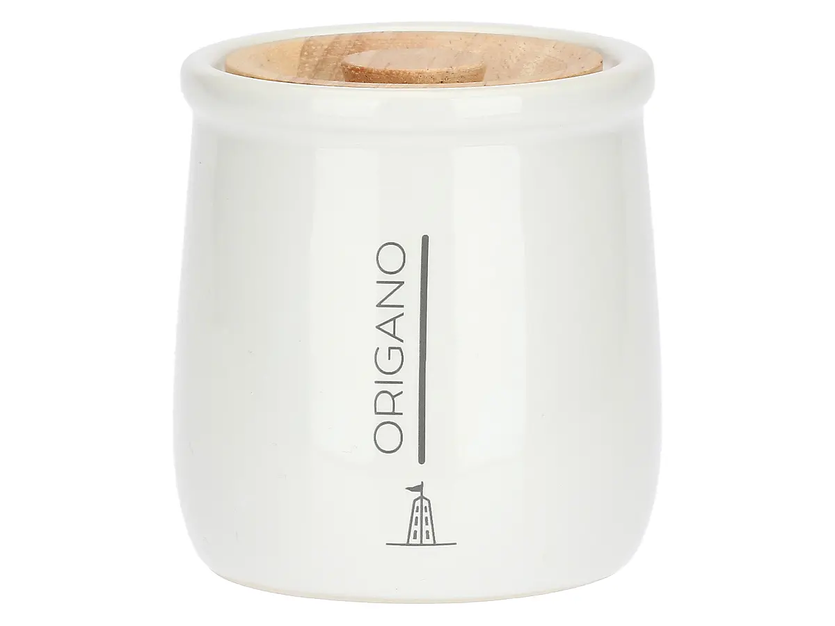 Barattolo per origano della linea “Gli Onesti” in porcellana bianca, ideale per organizzare la cucina con stile. Caratterizzato da un design moderno e da una personalità decisa, unisce funzionalità ed estetica in un unico complemento.